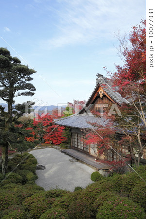 秋の京都 金福寺 紅葉が美しい庭園から芭蕉庵が見える
