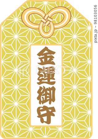麻の葉模様の金色の「金運御守」のお守りのベクターイラスト