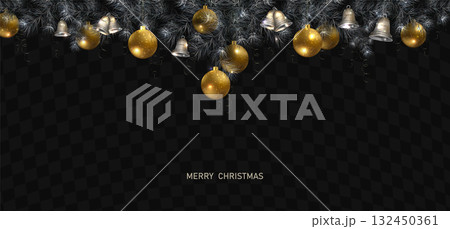 Merry Christmas 2026. Isolated garland with textured gold bell