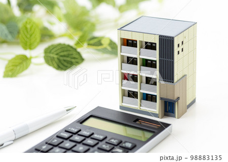 電卓を持つ不動産業のミドルのビジネスウーマン