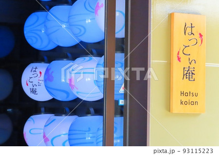 小江戸川越の町並み風景 ショーウインドウの和布で出来た人形たちとガラスの映り込み