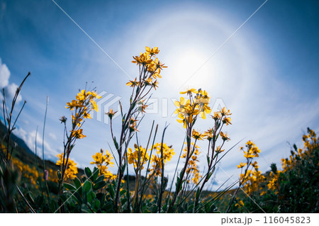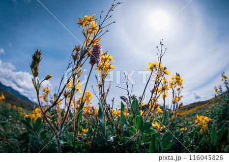 Wild flowers blooming in high altitude grassland