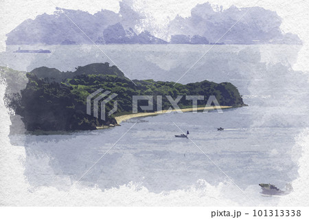 水彩画風 釜島海水浴場 岡山県倉敷市