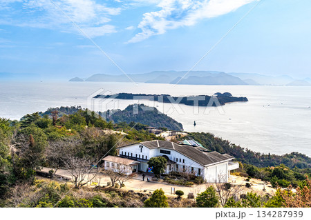 早春の鷲羽山レストハウスと瀬戸内海 岡山県倉敷市