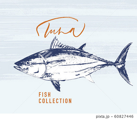 Hand drawn illustration of ocean sea fishes such as mackerel, tuna and capelin. Vector illustration of underwater wildlife animals in vintage sketch style. Great for packaging, banner, menu design