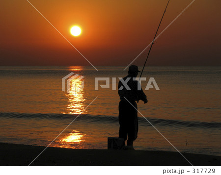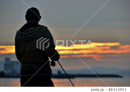 釣り人 朝日と釣り人 釣りをする人 釣り