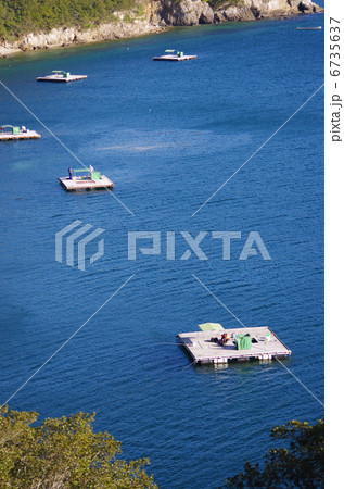 養殖いかだのある魚港の風景