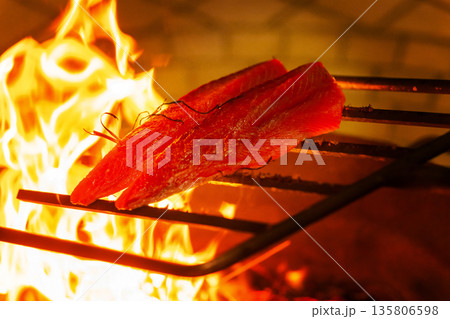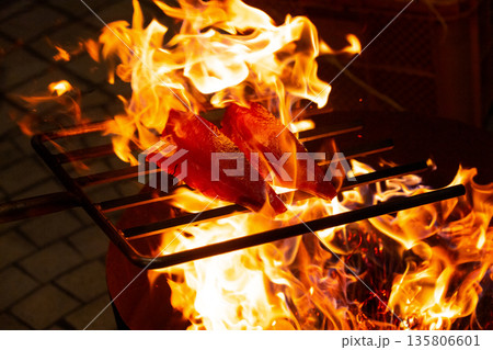 Fishermen cook their catch a bonfire. Travel, fishing season, adventure, hobbies, outdoor activities