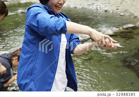 渓流釣りイメージ 釣りをする子供