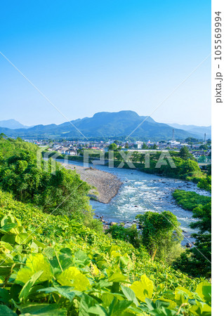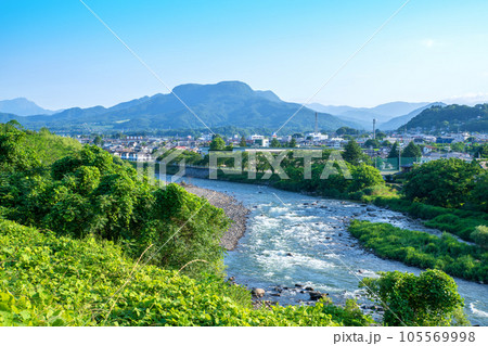 利根川 谷川連峰 三峰山 沼田市鷺石橋付近からの風景