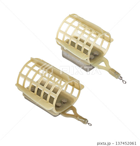 Fishing feeder cages isolated on white background. File contains clipping path.