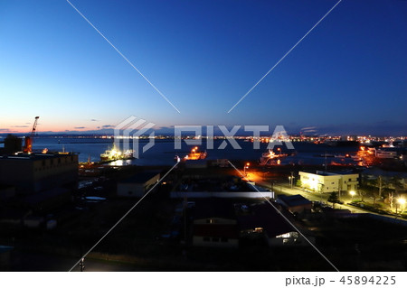釧路港港湾の夕景の空撮