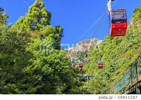 《御在所ロープウエイ》ゴンドラ内から見た山頂付近の絶景