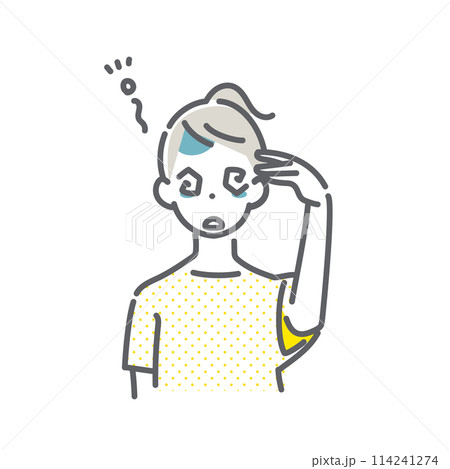 鏡で青くまに気付き、ショックを受ける女性のイラスト