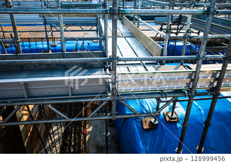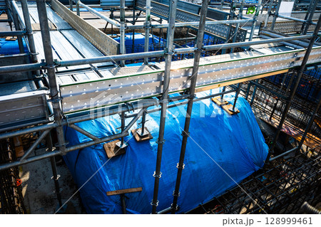 大規模な建設現場と足場の架け払い