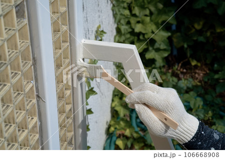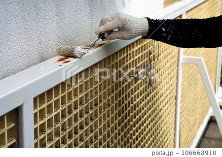 錆びた鉄製門扉を塗装する職人 塗装工事 01