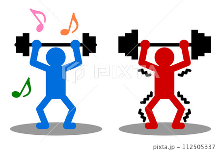 鉄製の重いバーベルを使用してベンチプレスで筋肉を鍛える筋トレをしている人物イラスト