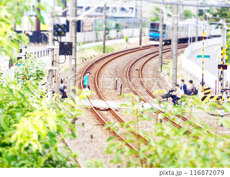 電車に群がる鉄オタの人々【撮り鉄・鉄道ファン・列車・線路】