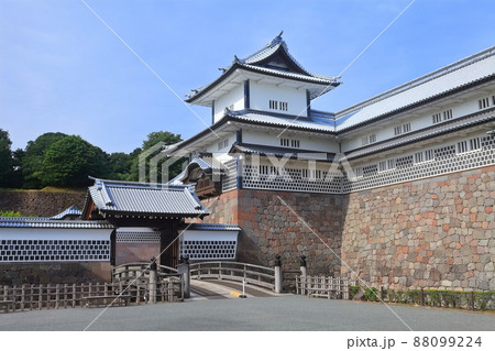 【石川県】快晴の金沢城の鼠多門と鼠多門橋