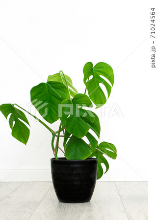 Monstera in a white pot isolated over white background. Monstera, Swiss Cheese Plant, Monstera deliciosa Liebm, Araceae.