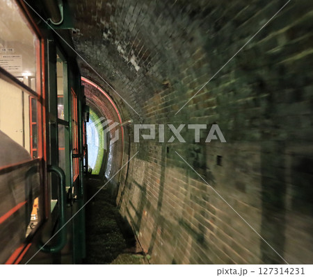 マイントピア別子の鉱山観光列車、登録有形文化財の中尾トンネルを通過する
