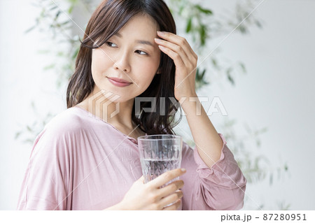 ミネラルウォーターを飲む女性(スポーツ-食事)