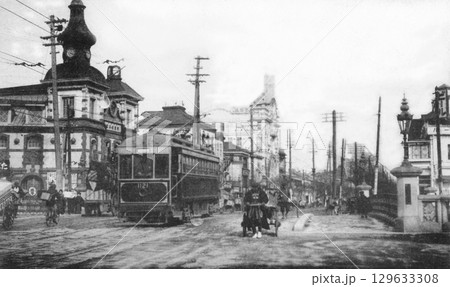 古写真 1907-1918年 東京 銀座中央通りの銀座八丁目付近