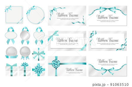 上品なターコイズブルーのリボンフレームセット