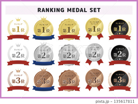 リボン付きランキング エンブレム メダル バッジの素材セット