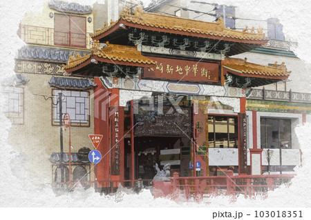 水彩画風 長崎 長崎新地中華街 長崎県長崎市