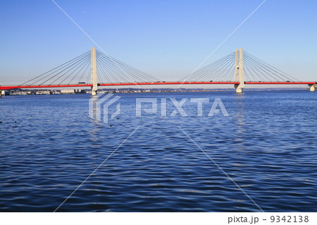 冬の早朝の銚子大橋と利根川河口(千葉県銚子市)
