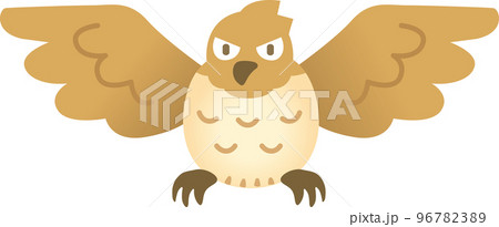 羽を広げて飛んでいる三白眼のポップな鷹イラスト線なしのコピー