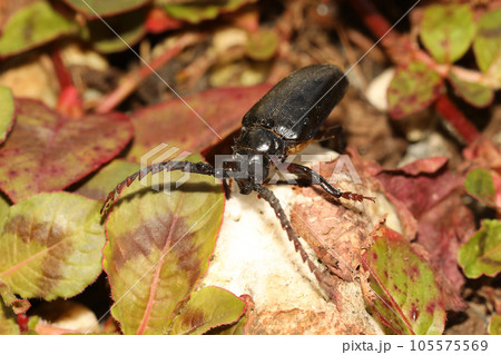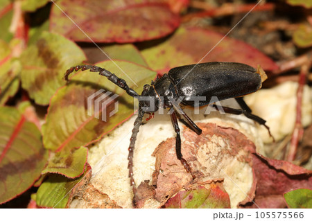 朝露をまとうノコギリカミキリムシ・鋸天牛虫