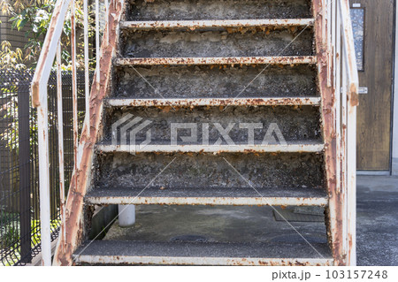 ペンキが剥げてサビが目立つアパートの鉄骨階段