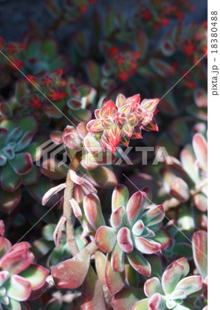 エケベリア 春になると葉は緑が濃くなり赤い花が咲きます。