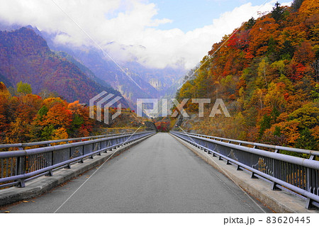 紅葉の奥飛騨温泉郷の北アルプス大橋