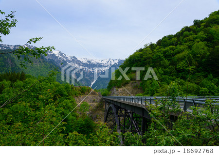 《奥飛騨の絶景・春》残雪の北アルプスと北アルプス大橋