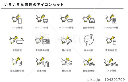 いろいろな修理・工事のシンプルアイコンセット、ベクター