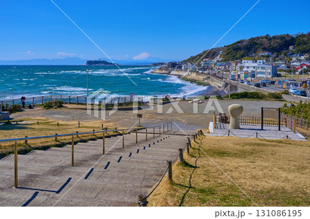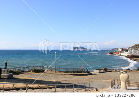 鎌倉海浜公園(稲村ケ崎地区)から江の島方面の風景 冬