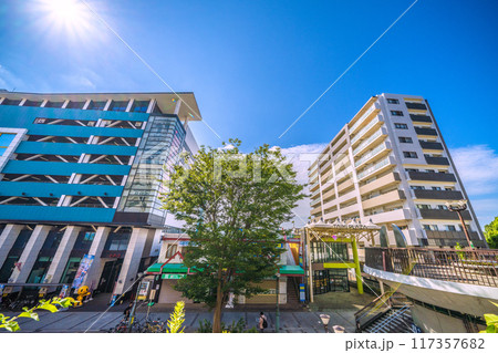 日本の千葉都市景観 千葉県千葉市緑区の土気駅前のショッピングモーなどを望む