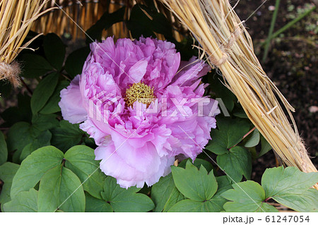 満開になった上野東照宮ぼたん苑の冬ぼたん「鎌田藤」