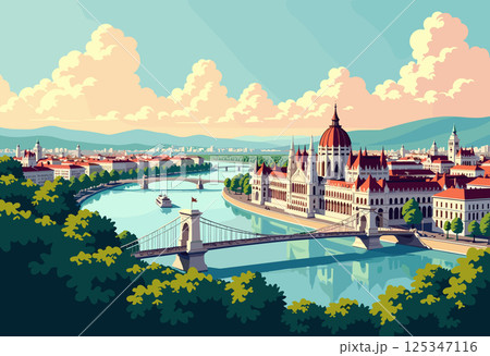 Budapest Hungary Panoramic View Showcasing Chain Bridge and St Stephens Basilica Skyline