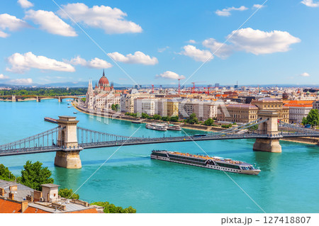 Skyline day view of Budapest with Parliament building, Chain Bridge and Danube river, Hungary