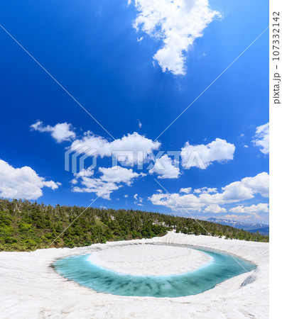 初夏の八幡平雪解けの鏡沼のドラゴンアイ