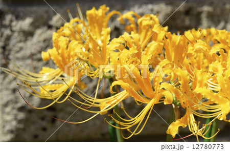 沖縄の路地に咲く黄色い彼岸花(ショウキズイセン)