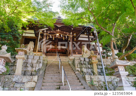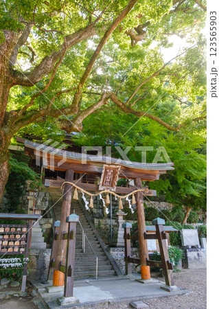 新緑に覆われた神社の境内 鐸比古鐸比賣神社