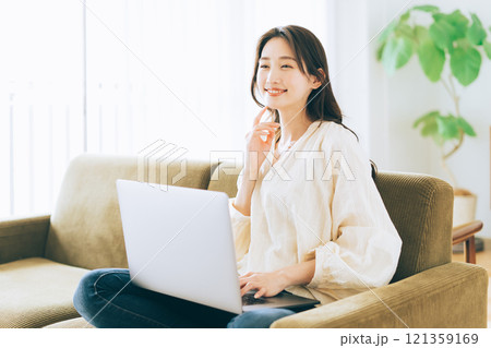 ノートパソコン ソファ 30代女性