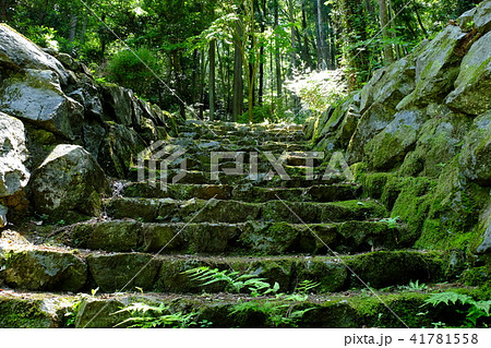 埼玉県:金鑚御嶽城跡/階段と石垣がある風景/神川町