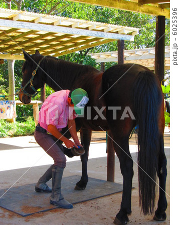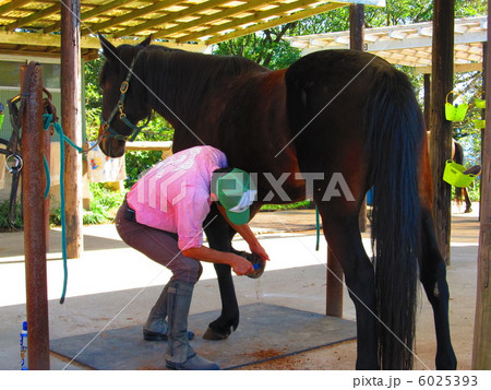 馬のひずめをお手入れする乗馬さん