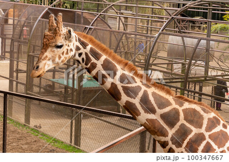 キリンの横顔 近距離で見る頭部 動物園のキリン